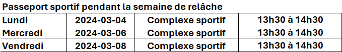 La semaine de relâche se déroulera du lundi 3 mars au vendredi 7 mars.